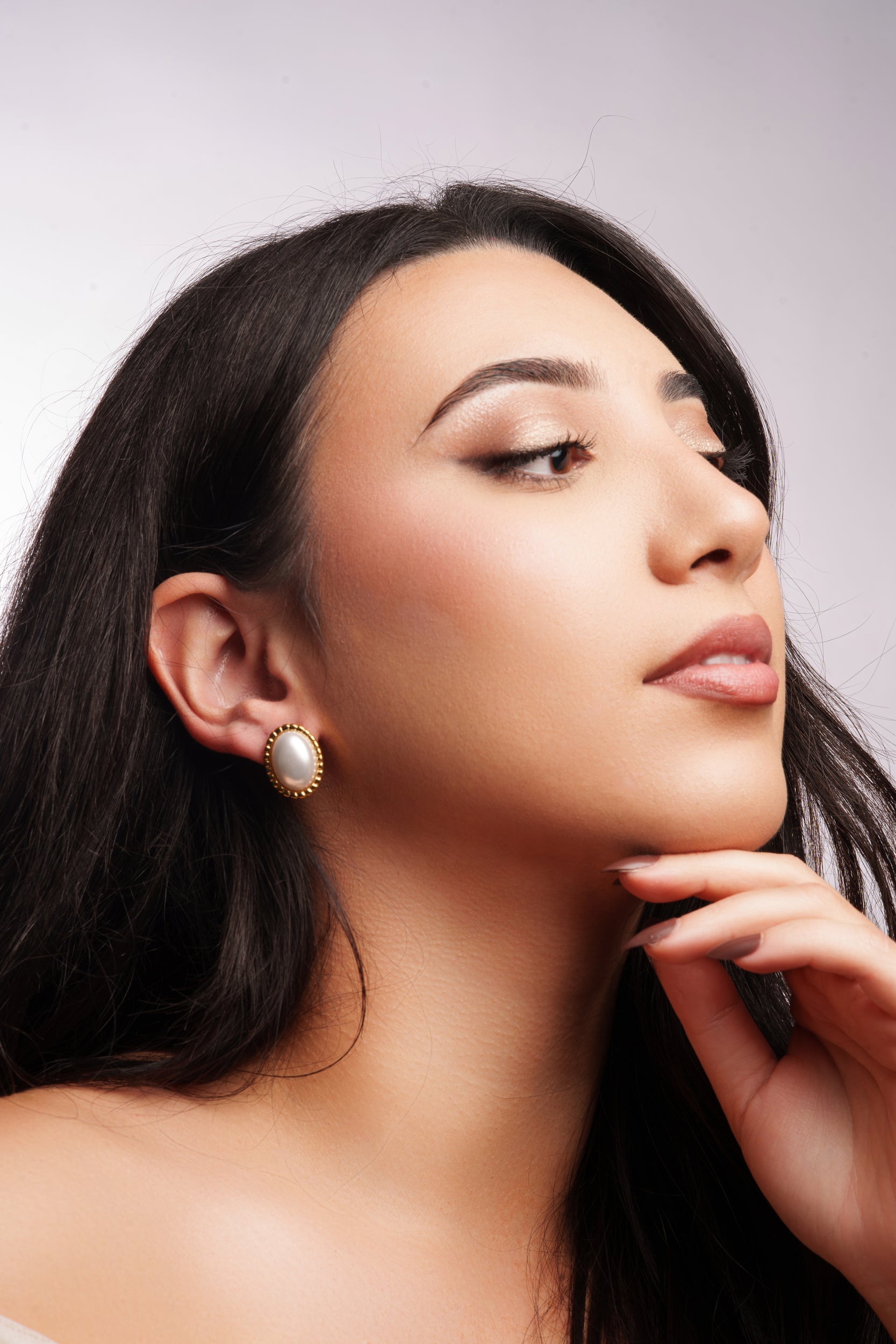 Ornée d’une perle nacrée ovale